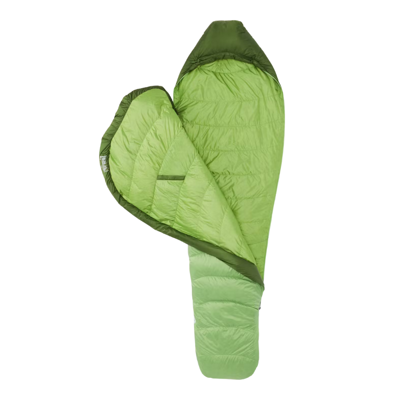 - Pagrindinis užtrauktukas su užstrigimo apsauga ir antrasis užtrauktukas, kurį galima atlenkti, užtikrina papildomą ventiliaciją ir lengvą įlipimą į miegmaišį bei išlipimą iš jo.